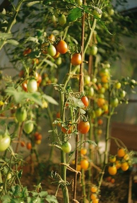 Choose determinate varieties for a concentrated harvest‚ ideal for canning‚ or indeterminate varieties for a continuous supply throughout the season. Provide sturdy support‚ such as stakes or cages‚ to prevent sprawling and fruit rot. Consistent watering and fertilization are essential for healthy growth and abundant fruit production.